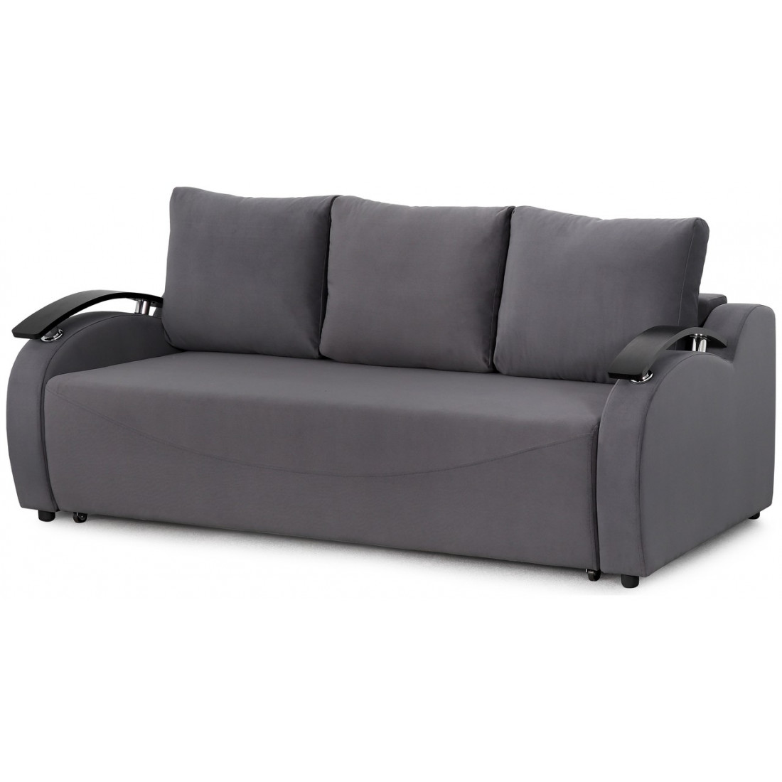Простые геометрические формы, изогнутые линии подлокотников и стильные вставки создают запоминающийся образ дивана. Ярким акцентом, подчеркивающим стиль модели, являются ручки на царге. Однако их назначение не ограничивается декоративной функцией. Ручки выполняют и важную практическую задачу - за них удобно браться при раскладывании дивана. Благодаря достаточной мягкости приспинные подушки обеспечивают прекрасную поддержку для спины людям любого роста - это очень важно для хорошего отдыха.
